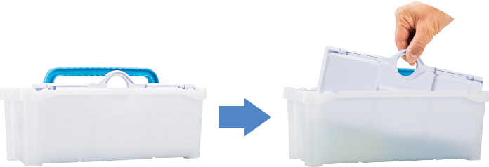 - 筆洗に収納した時にパレットの持ち手がとび出しているので、取り出しやすくなっています。